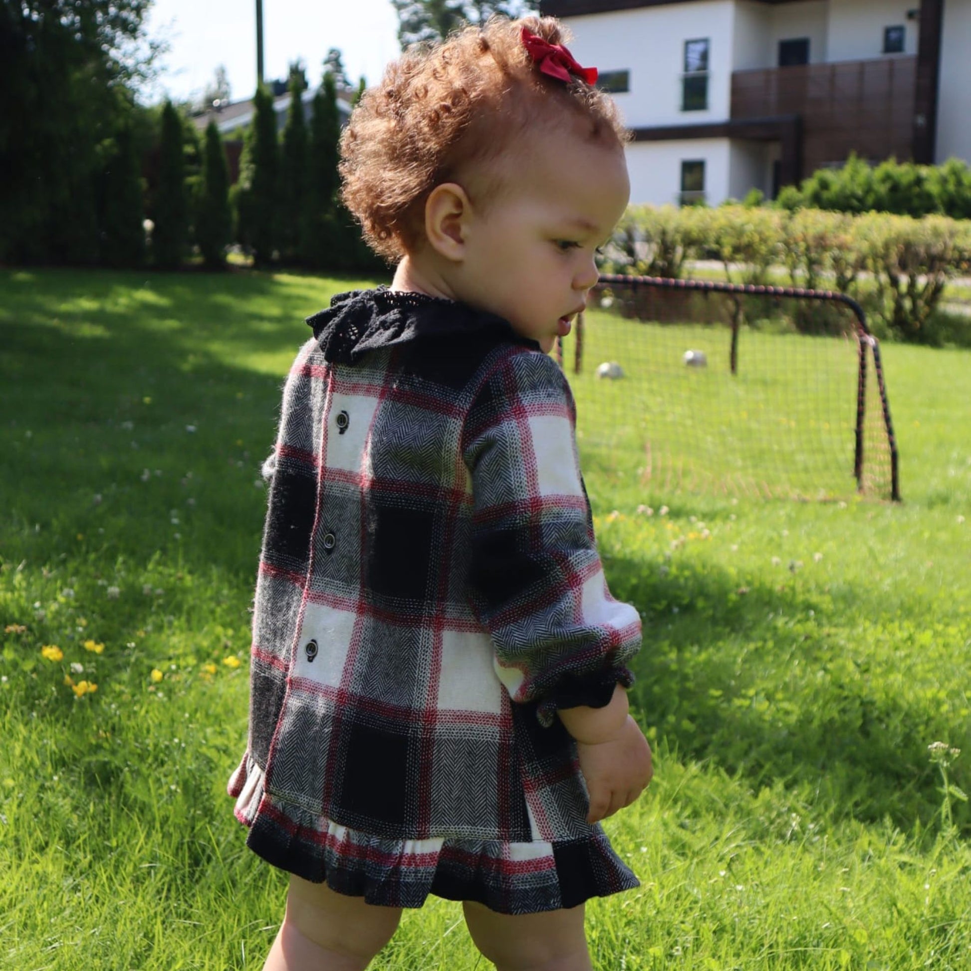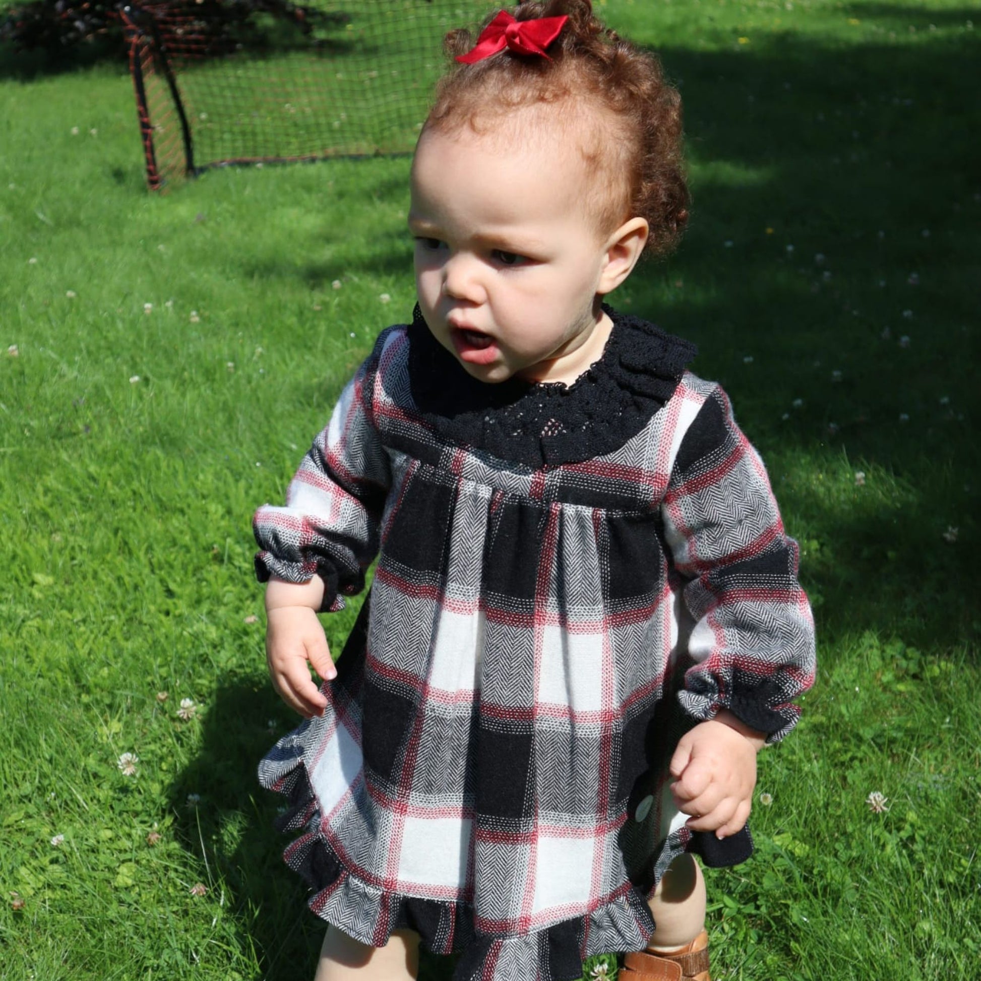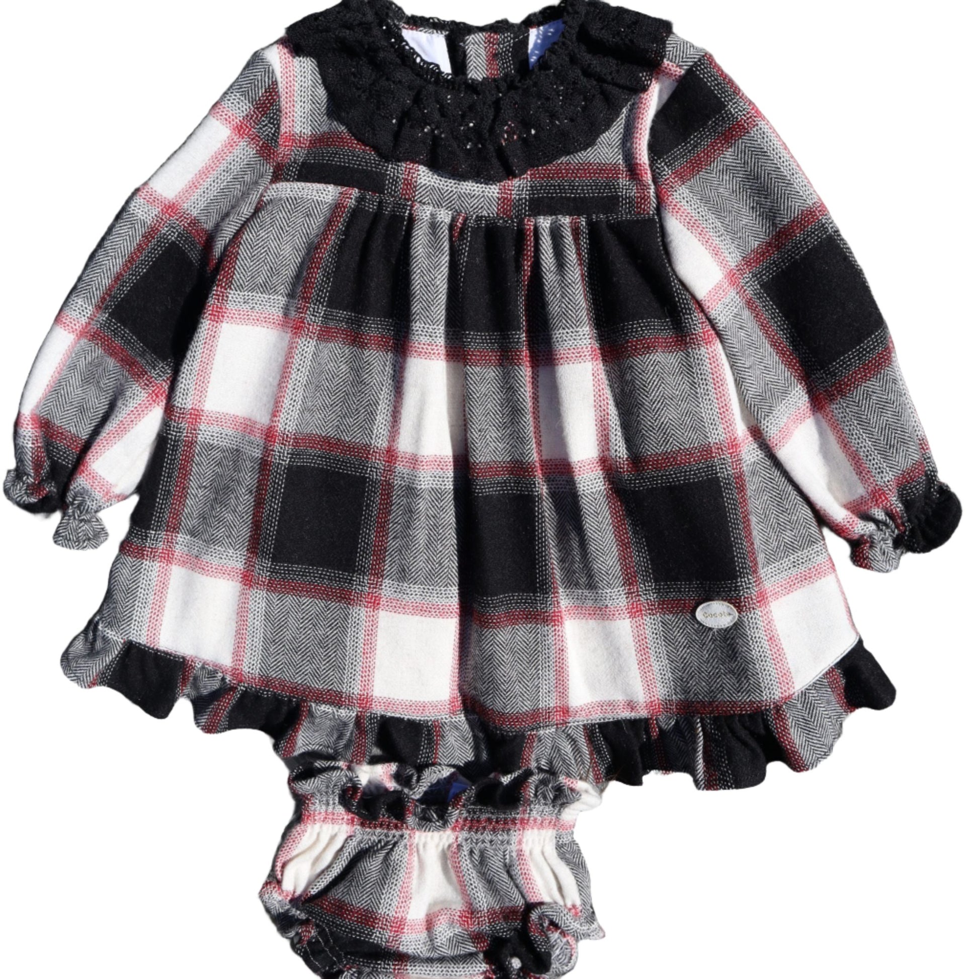 Introducing this cute and elegant dress with matching bloomers, the perfect addition to your little girl's wardrobe.