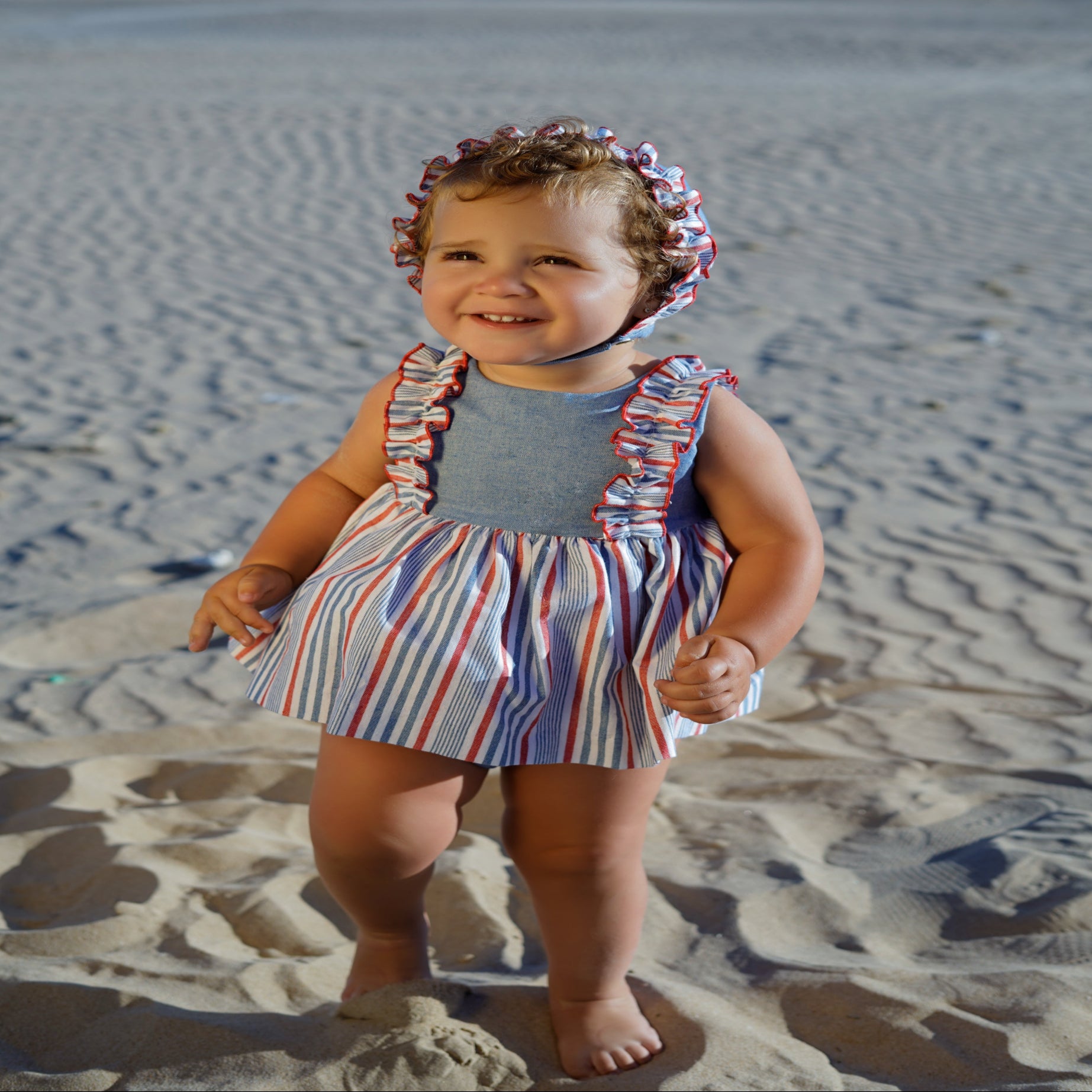 Babyklærne våre er designet og produsert i Spania. De er litt små i størrelsen, av erfaring så anbefaler vi å gå en størrelse opp enn hva barnet din vanligvis bruker.
