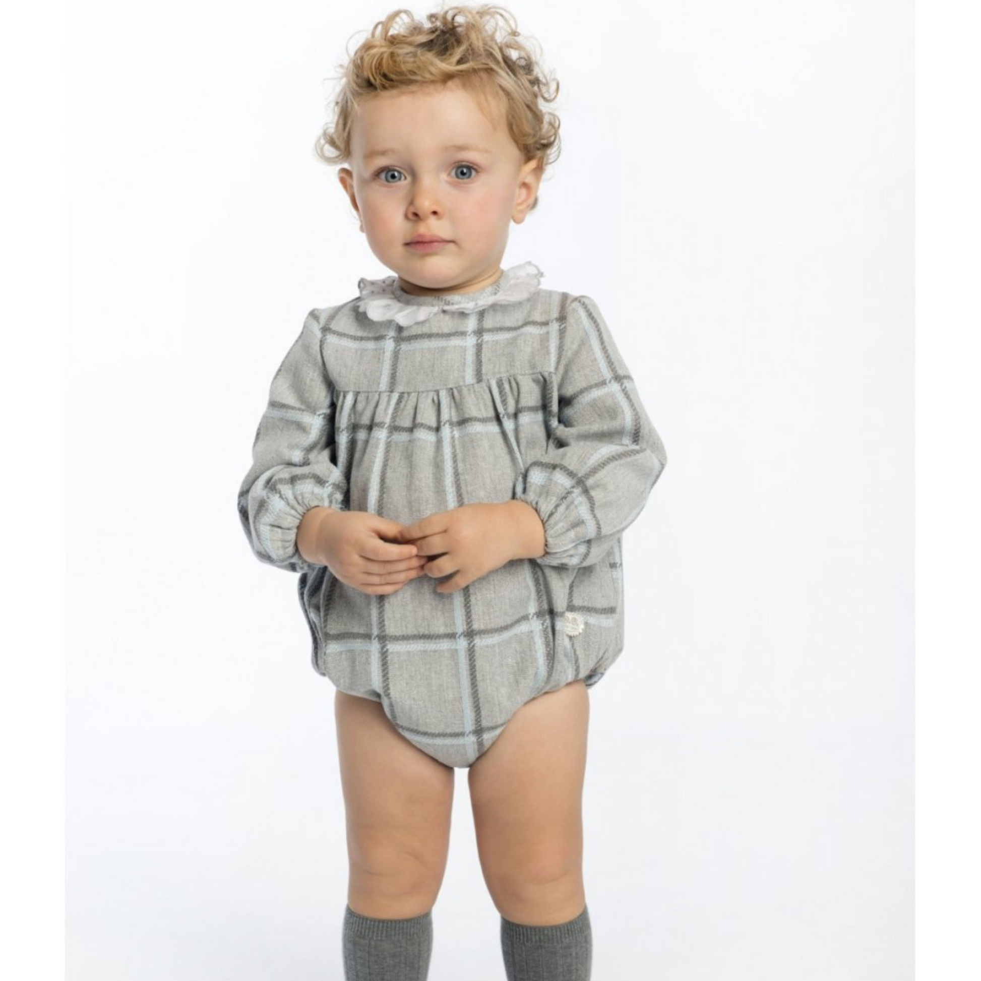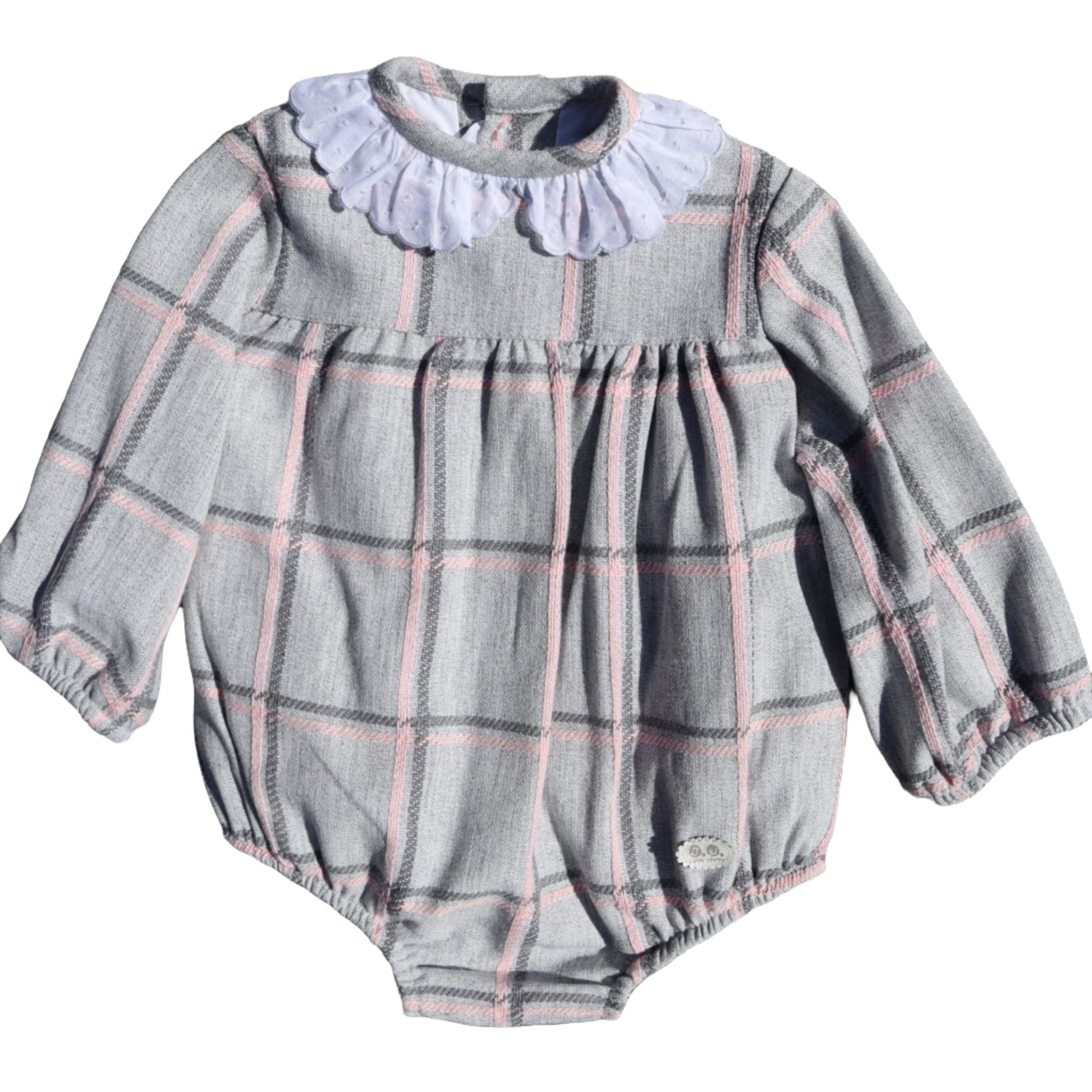 Nydelig romper i flott design og klassisk grått og rosa fargekombinasjon fra babykleskolleksjonen vår.