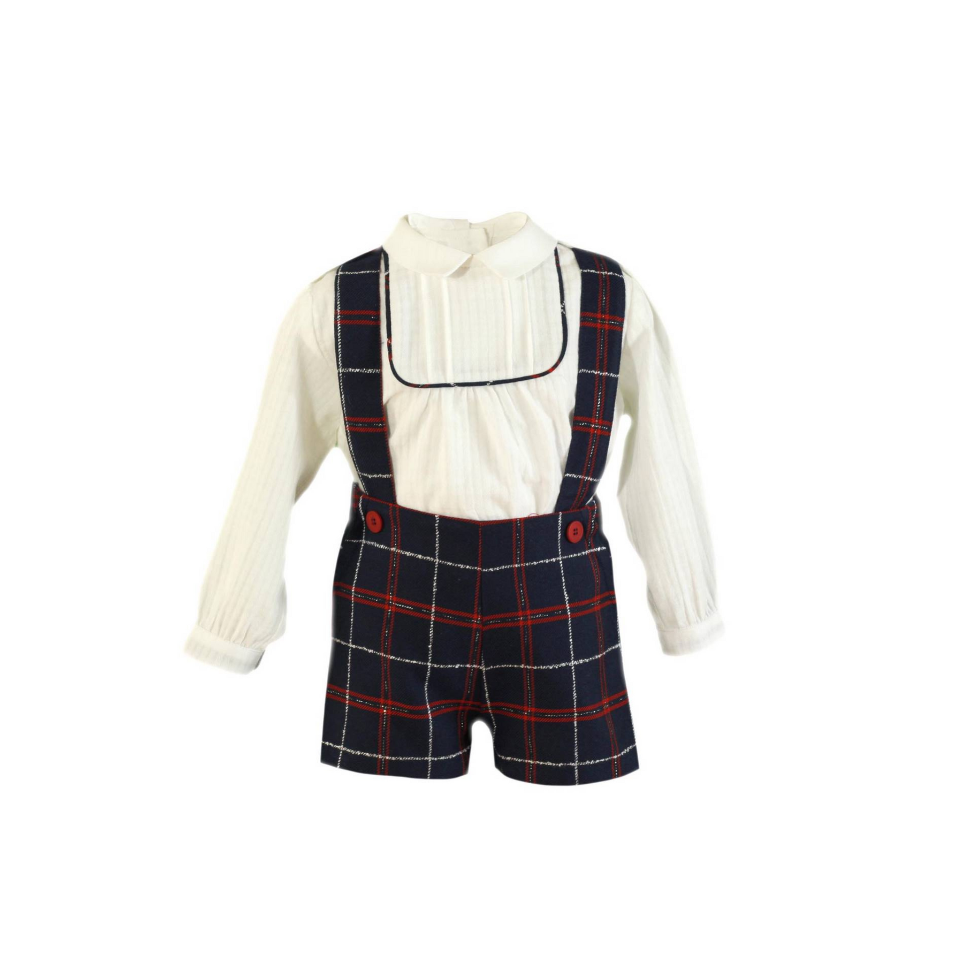 Dette stilige settet inkluderer et par vakre selebukse og en herlig skjorte, perfekt for enhver anledning. Er dette settet ikke bare moteriktig, men også slitesterkt, noe som sikrer at den lille holder seg stilig hele dagen.