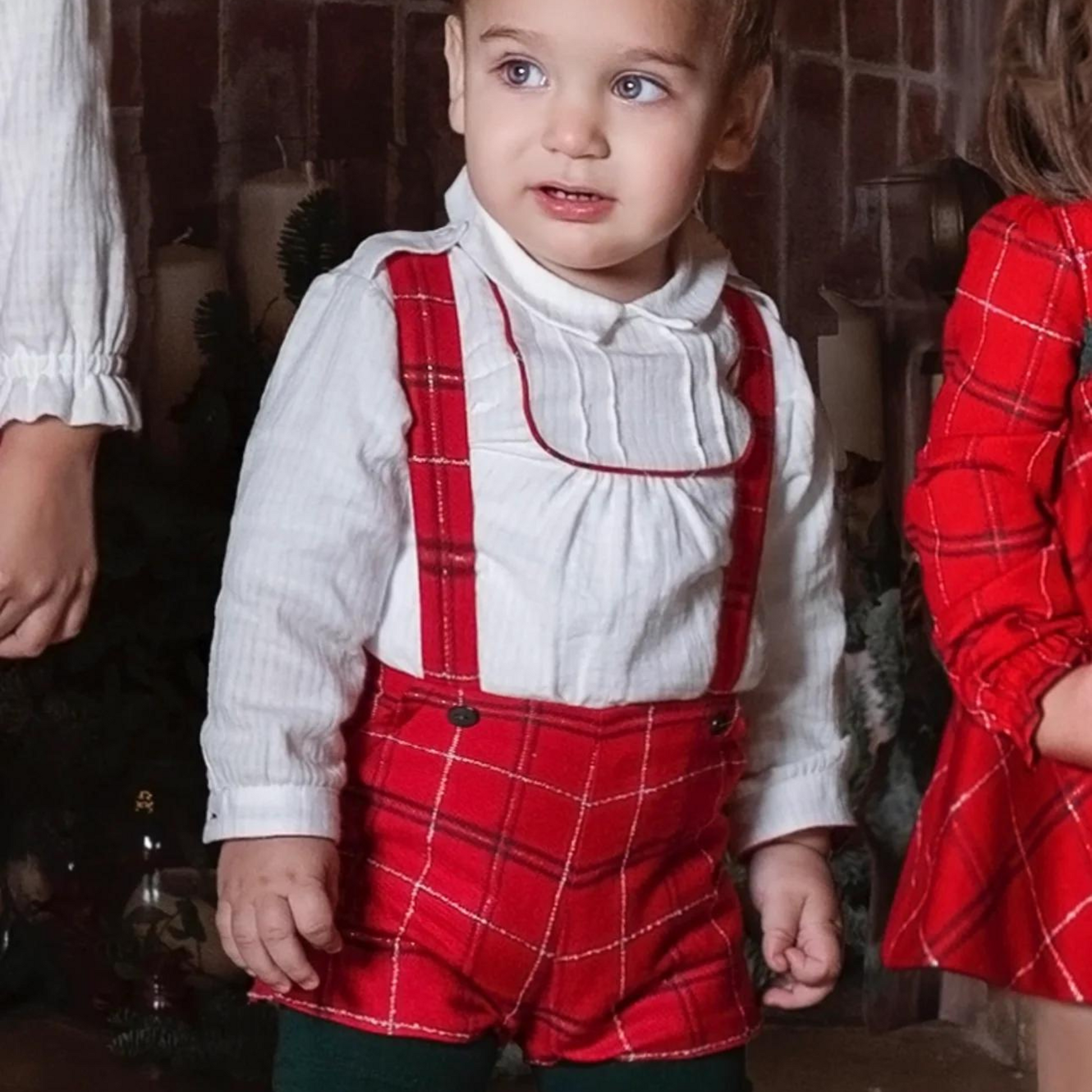Dette stilige settet inkluderer et par vakre selebukse og en herlig skjorte, perfekt for enhver anledning. Er dette settet ikke bare moteriktig, men også slitesterkt, noe som sikrer at den lille holder seg stilig hele dagen.