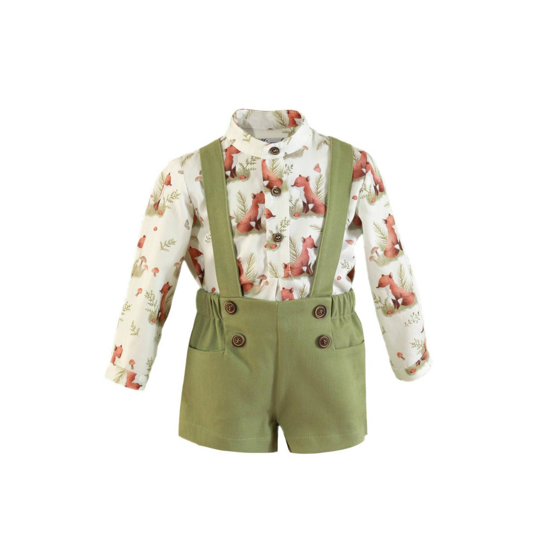 Dette vakre settet inkluderer en flott selebukse og en stilig skjorte. Den vil være et flott tillegg til ditt barns garderobe og passer for både uformelle og formelle arrangementer.