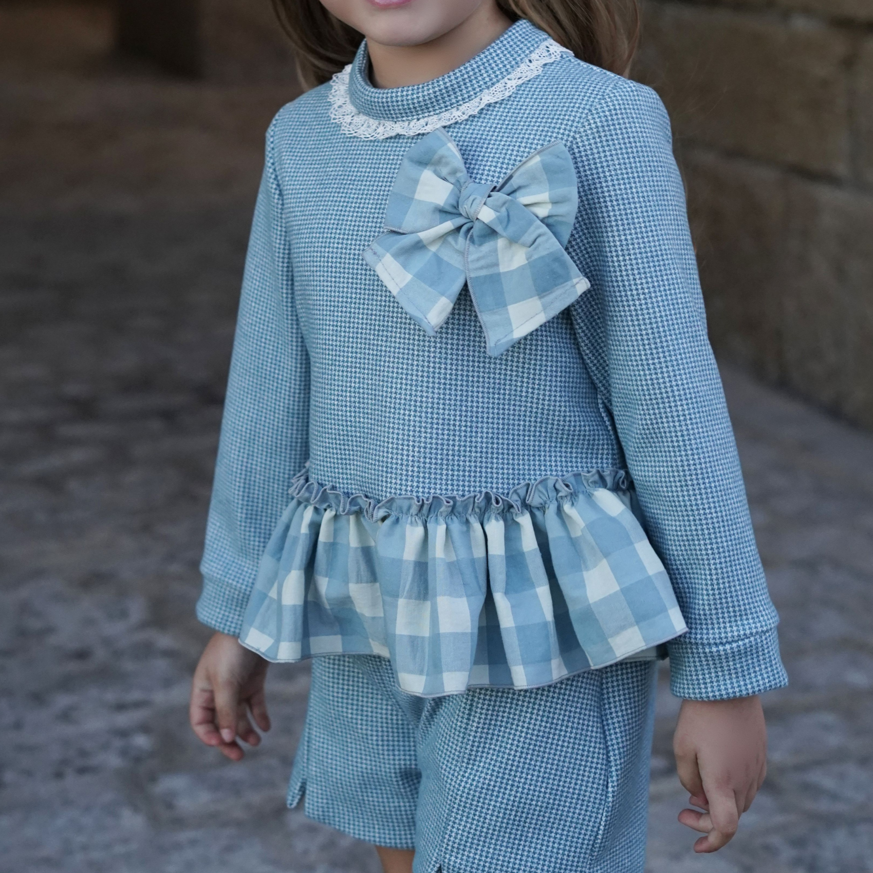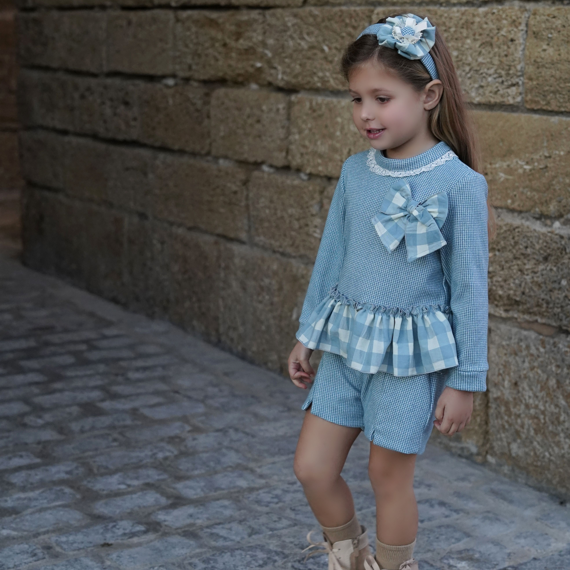 Nydligste antrekket. Har dette settet en turkis farge som er både stilig og behagelig for babyen din. Toppen er designet med et sjarmerende trykk og kombinert med matchende shorts. Enten det er en lekedate, spesiell begivenhet eller en familietur, vil din lille se helt bedårende ut i dette todelte settet.