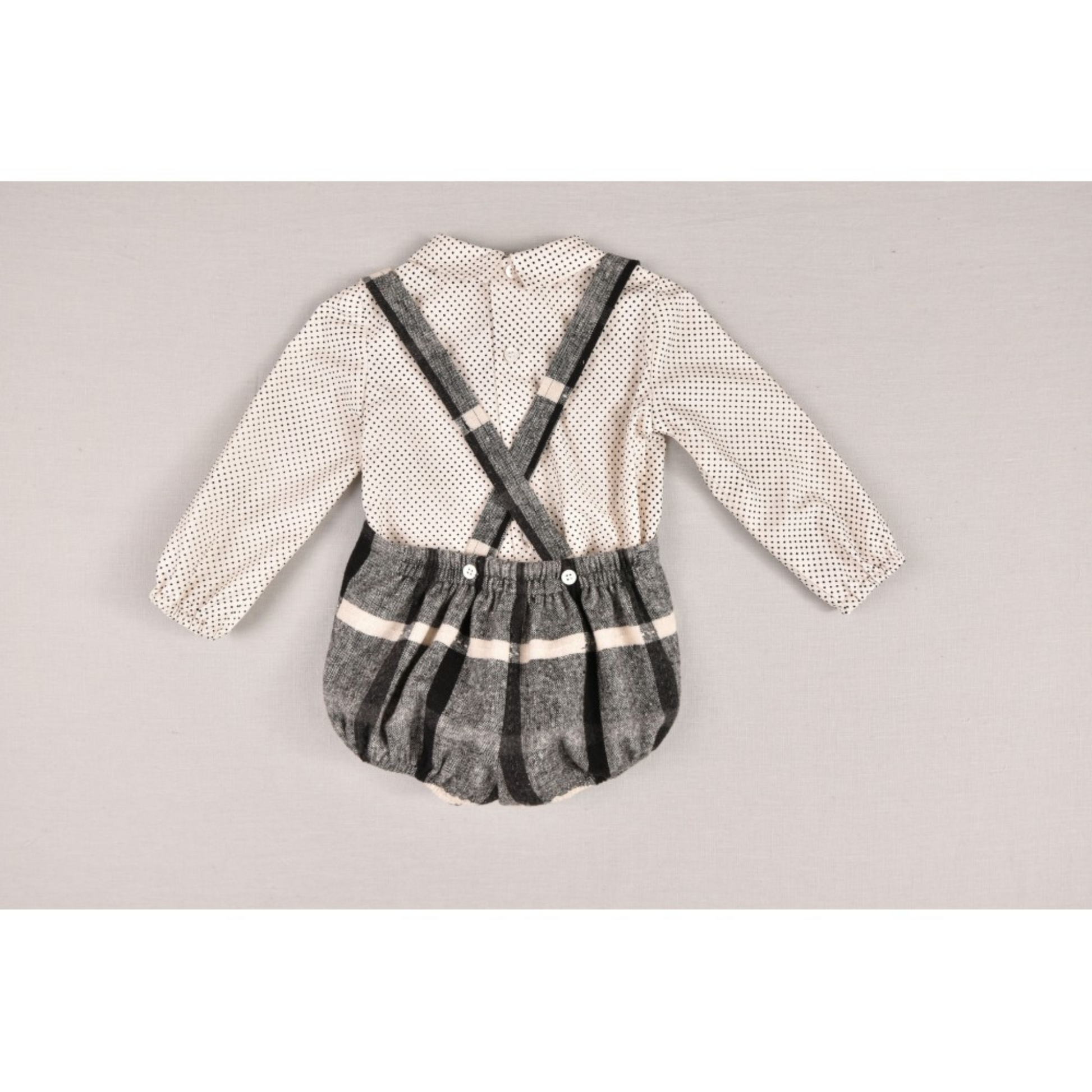 Dette vakre settet inkluderer en flott selebukse og en stilig skjorte. Den vil være et flott tillegg til ditt barns garderobe og passer for både uformelle og formelle arrangementer.